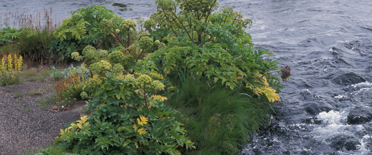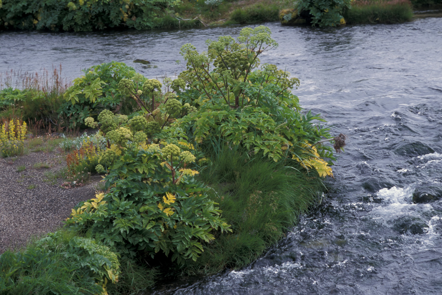 Moncarpic herb with stems commonly green, to 2m. Leaves to 60cm, 2-3 pinnate, segments oblong-ovate, to 15cm, glabrous, irregularly and deeply toothed, terminal segments 3-parted, sessile, decurrent on rachis; petiole of lower leaves long, upper leaves with strongly inflated petiole. Umbels compound; rays numerous; involucre composed of few bracts; involucel composed of numerous bracteoles; flowers green-white to cream. Fruit c6mm; mericarps with prominent ribs, wings narrow, thick, corky; vittae solitary.
