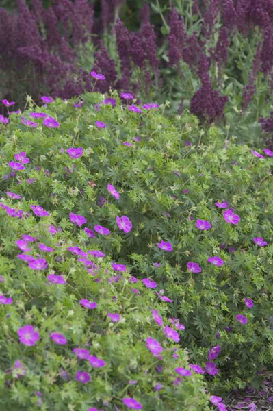 Flowers of good, strong, purple are borne throughout the season; plants to 15" tall; foliage assumes colorful tints in fall.