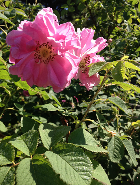 Rosa 'Kazanlik' is an Old Garden Damask rose. Thirty soft deep pink petals 2" across. Grown in Kazanlik Bulgaria and used to make the famous attar of roses