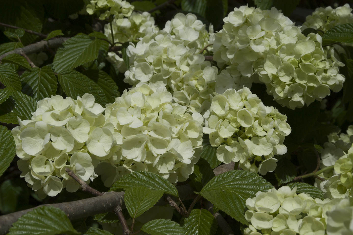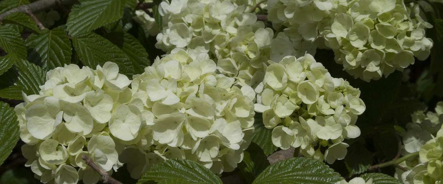 A medium-sized shrub producing small, uniformly rounded flower clusters along the upper part of the branches. Selected by David Leach.