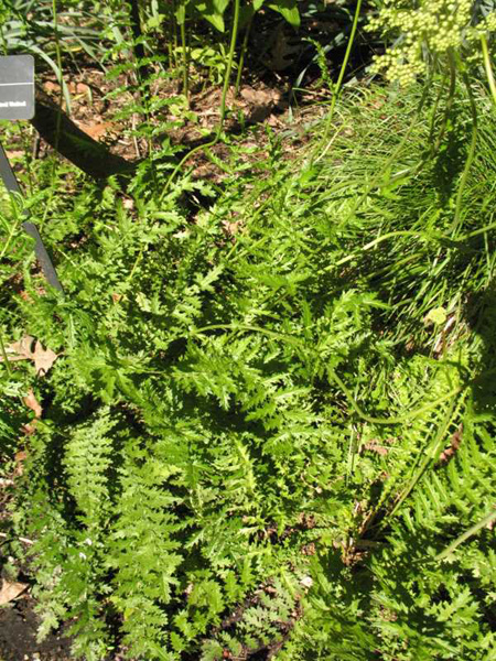 To 80cm. Stems simple, glabrous; roots bearing ovoid tubers. Leaves 17-51 foliate; leaflets to 2cm, ciliate, pinnatisect, narrow-dentate. Flowers in corymbs to 10cm; petals usually 6, to 9mm, white often purple below. Fruit to 4mm, erect, pubescent.