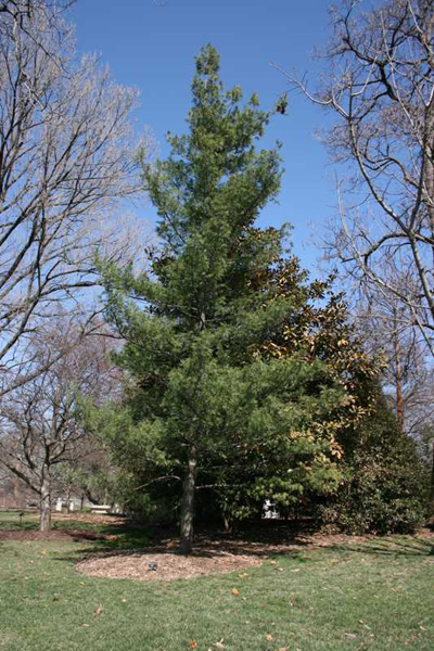 Trunk twisted, branches and young shoots twisting and ascending; needles densely arranged, 5 to 8 cm long; cones 4 to 7 cm long.