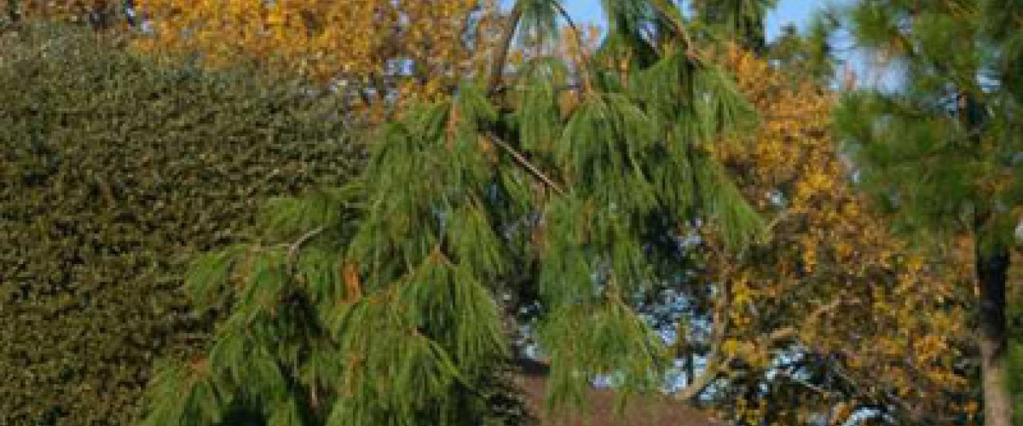 Weeping form with long branches which sweep the grpound; must be trained in youth to develop a central leader (DS 9). Tall, shrubby and multi-stemmed, or only single-stemmed, branches spreading horizontally and widely, drooping partly to the ground (DS 8).