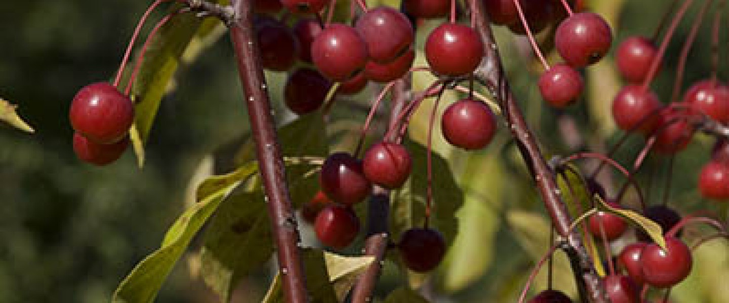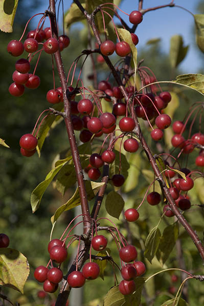Small to medium-sized upright-rounded, spreading tree with single, white flowers. Fruit red, very small, persistant. Good disease resistance.