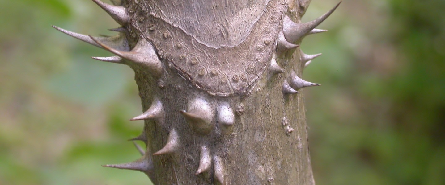 Large, few-stemmed shrub or small tree with stout, coarse branches forming an obovate outline, reaching 10' to 20' in height, although it can attain 30' to 40'; often renews itself by developing shoots from the base and forms a dense thicket of impenetrable branches. Foliage medium to dark green, sometimes lustrous, changing to subdued yellow-green and yellow. Flowers whitish, produced from July to August in 12" to 18" diameter umbellose-panicles at the ends of branches, flowers lasting for a long time. Fruit a purple-black, 1/4" long drupe, produced in great quantity in August into October, usually eaten by birds or falling soon after ripening; the infructescence turns pinkish-red and is attractive for several months in late summer through early fall. Bark gray-straw colored, glabrous, with prickles, leaf scars fully half encircling the stem.