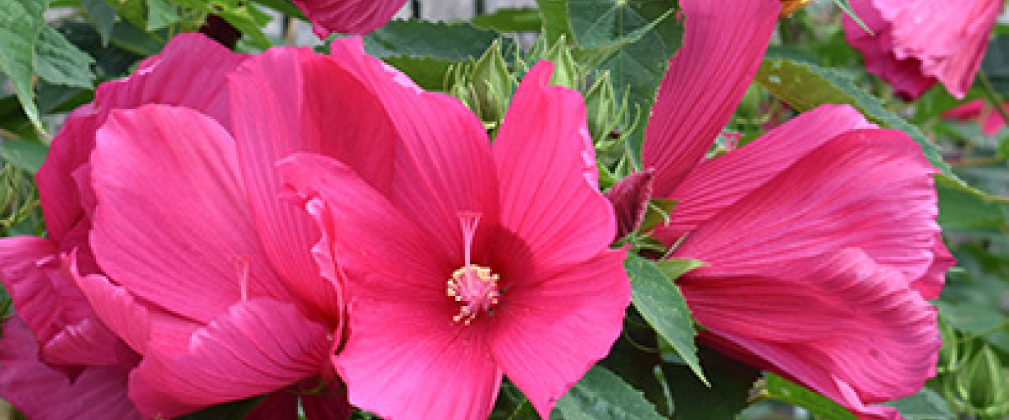 Plants 7' tall by 10' across with an abundance of 10" bright raspberry-red flowers.