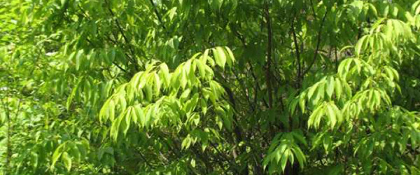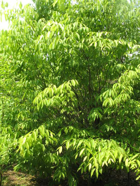 Small tree or large shrub reaching 30' in height; densely branched and upright, but not fastigiate, branchlets thin, glabrous. Leaves oblong, unlobed, doubly serrate, densely covered with silky hairs when young; fall color often a good golden yellow or rich brown. Flowers greenish, borne in racemes on long, slender pedicels in May.