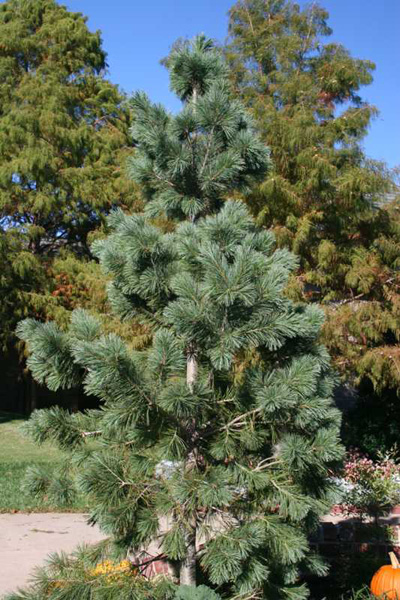 Densely pyramidal in habit with blue-green needles. Needles are long and twisted, alternately showing the deep green of the top in contrast with the glaucous undersides of the needles. Robust and vigorous; highly resistant to insect and disease problems. Discovered in a block of 500 seedlings at Bloomers Nursery in Flemington, NJ in 1967 by Peter Vermeulen and propagator Rein Vanderwolf (AAN June 1, 1994).