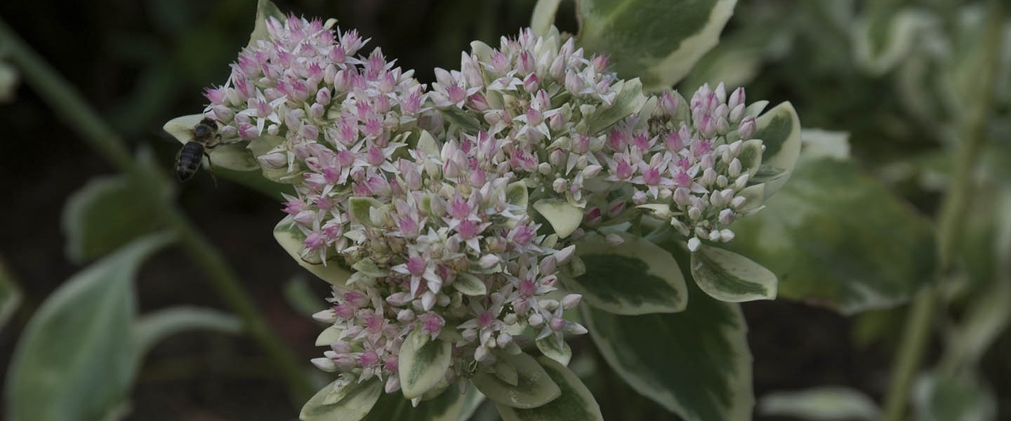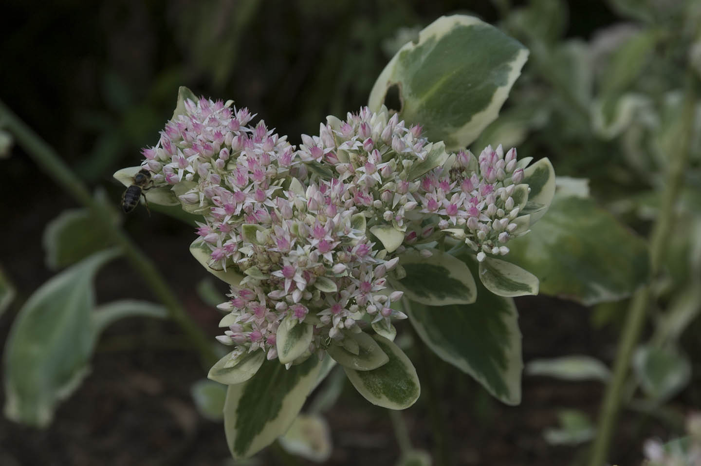 Plants 15" tall with gray-green leaves margined with purewhite; the flowers are also white and subtended by variegatedbracts.