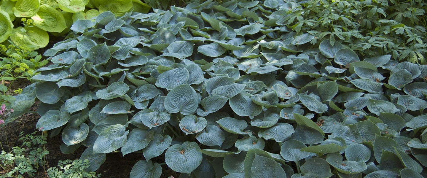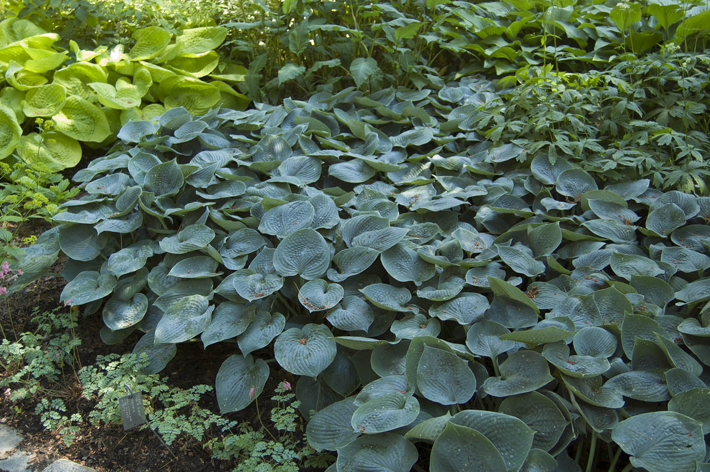 Medium-sized specimen with excellent blue leaves (Shady Oaks). Attractive foreground specimen; bestblue English import; slug resistant. Performs best in shade to 1/2 sun (Klehm).