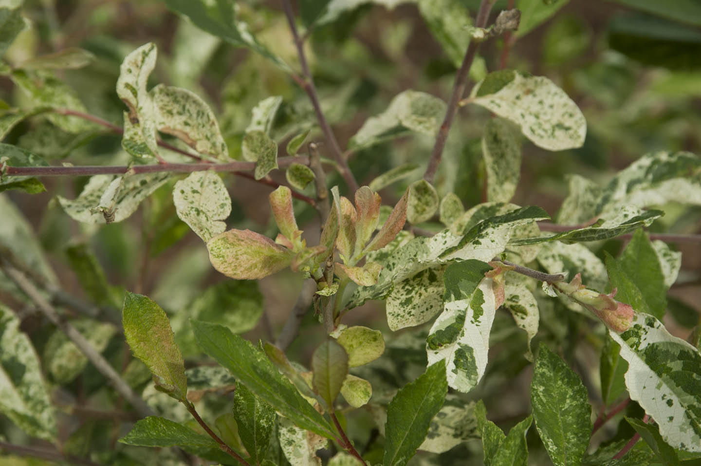 Erect, small tree reaching 15-25' in height and 12-15' in width; male catkins are 1-2" long, elongating in March and early April, silky gray. Quite susceptible to stem canker. Foliage variegated.