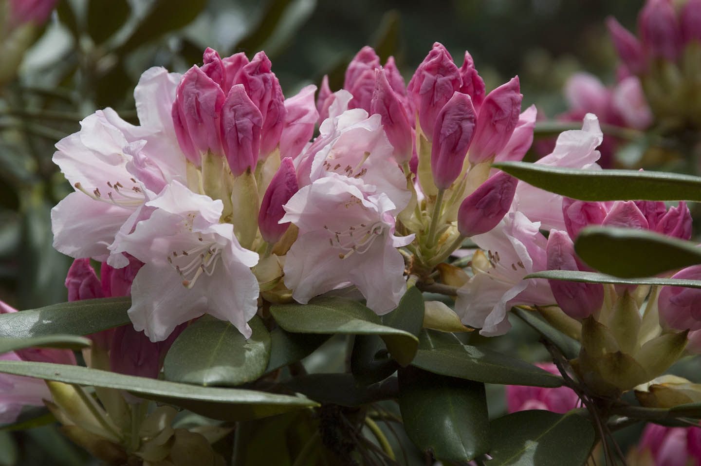 To 5'; hardy to -15 degrees F.; early to mid- season blooming; ARS rating 4/4/4. Clear pink buds open to white flowers reflecting the yakusimanum parentage; unusually floriferous. Plant broader than tall, densely clothed with elliptic foliage that is held 3 years; new growth farinose, brown for several weeks. (David G. Leach, 1972).