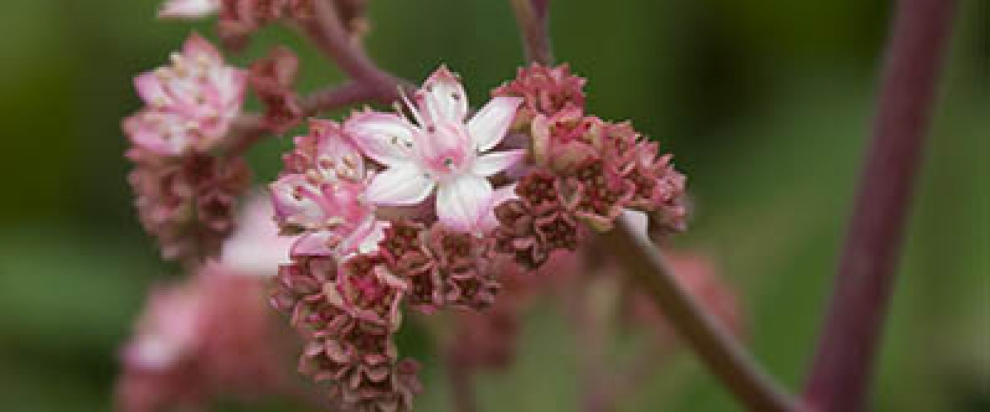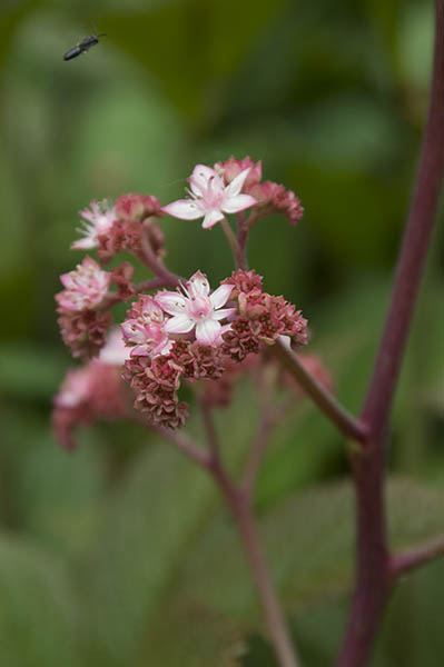 Plants reach 4' in height with bronze foliage held on red stems; flowers dark pink.