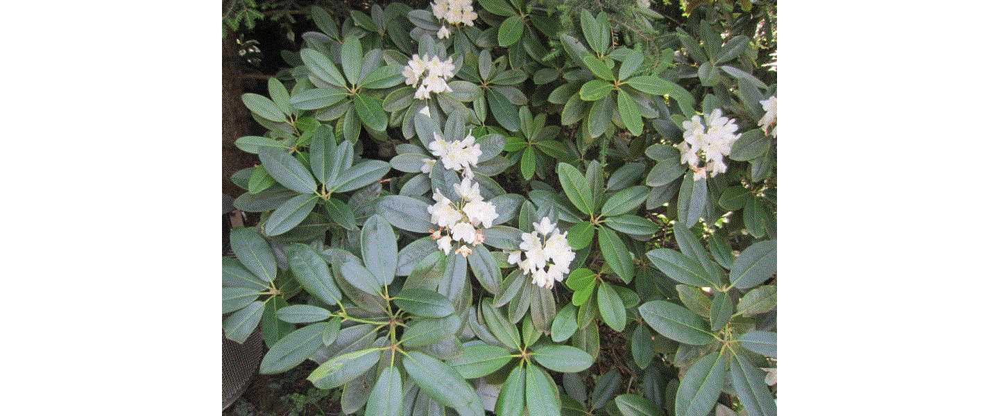 Loose and open habit; plants reach 4' to 15' in height in the North, but can attain 30'. Leaves are large, 4" to 8" long, and dark green; evergreen. Flowers are rose, purplish-pink to white, spotted with olive-green to orange, 1" to 2" across, borne in June.