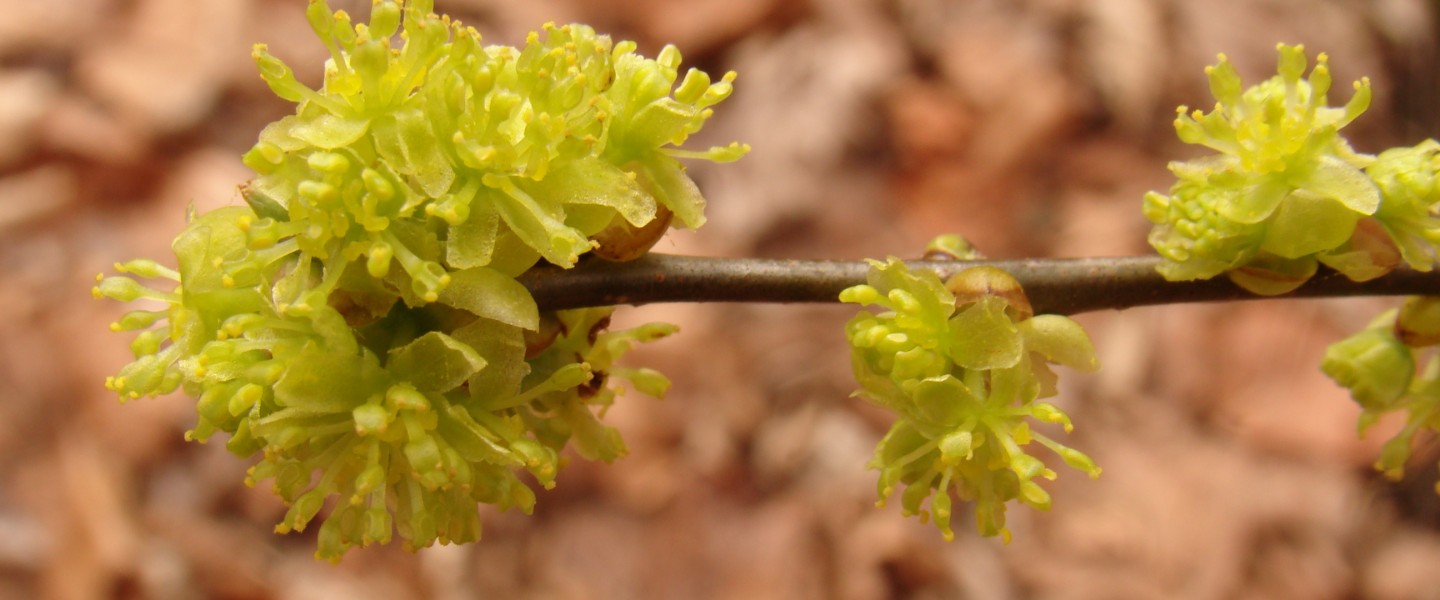 Usually rounded in outline, somewhat loose and open in the wild, full and broad-rounded in full sun, 6'to 12' in height with a similar spread. Fall color light yellow. Flowers dioecious, greenish-yellow,borne in early to mid-April before the leaves in axillary clusters; attractive but not showy. Fruit adrupe, 2/5" across, bright scarlet, ripening in September, seldom seen since it is showy only after theleaves have fallen and is borne only on pistillate plants, but it can be very ornamental.