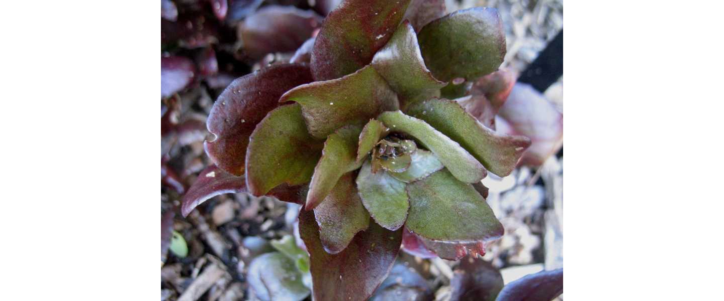 Deep chocolate-brown to bronze glossy foliage forms upright shorter mounds to 12" tall. Soft dusky rose-pink flowers highlight the lightly scalloped foliage in summer.