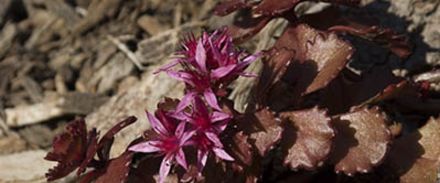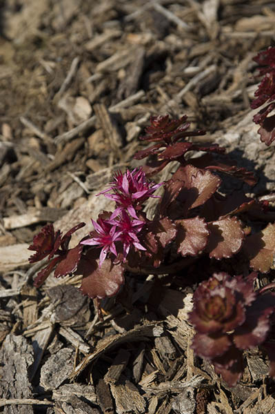 A red-green carpet forming sedum with ruby flowers in June and July. Grows 4-6" tall.