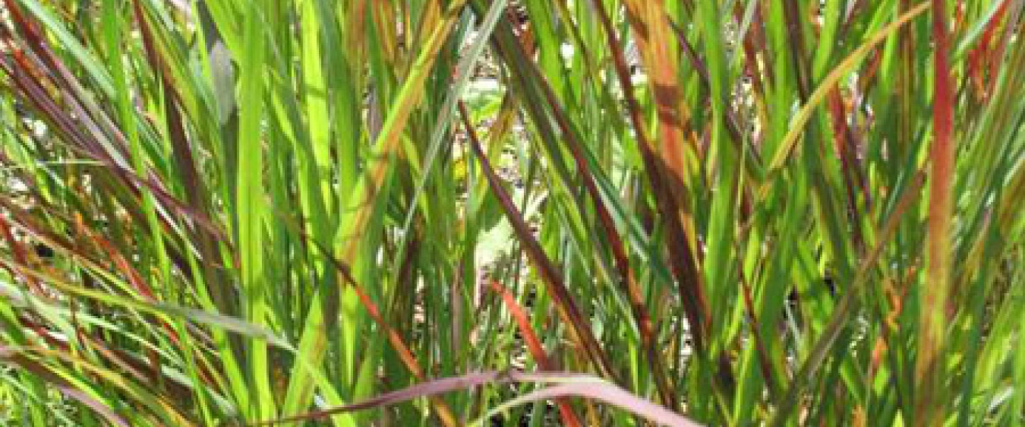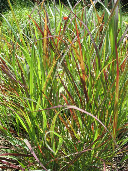 From Amber Wave Gardens, Panicum 'Cheyenne Sky' PPAF forms a tight, v-shaped, 3' tall, clump of blue-green foliage that turns wine red in early summer. By late summer the plant is almost totally saturated in color and forms wine red flower clusters.