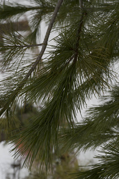 A medium-sized to large tree of narrowly conical habit, with minutely pubescent young shoots; winter buds cylindrical-ovoid. Leaves in 5's, 8cm to 10cm long, dark blue-green with white inner surface. Cones solitary or in clusters, ovoid-cylindrical, stalked, 10cm to 25cm long, usually clustered at the ends of branches, pendulous after the first year.
