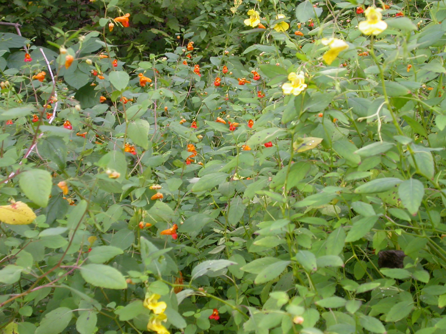 A 2-5' tall annual with weak, watery stems and pale yellow, cornucopia-shaped flowers. Seed pods explosively dehisce. Reseeds to form large colonies under ideal growing conditions.