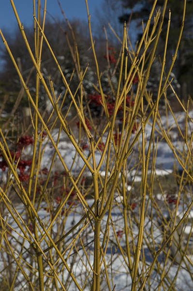 A yellow-stemmed selection made from a seedling population of C. alba by Boughen Nurseries, Saskatchewan, Canada. Plants have clean, attractive foliage, and appear to be resistant to the stem canker that affects C. stolonifera 'Flaviramea.' A COPF introduction.