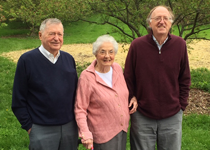 In May 2019, Jim joined his parents to hang the dedication tags on the crabapple trees in the Dye-Spencer Family Grove. One tree is dedicated to Dorothy’s parents and her four brothers who all attended Cornell. A second tree honors Jim, Sr.’s parents. A tree each for Jim and Dorothy, and a newly planted crabapple recognizes their children. “Dorothy’s” tree was almost in bloom.