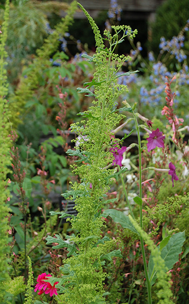 Differs from C. ambrosioides in its more erect habit, leafless panicles of flowers, and its smaller (1-5cm) pinnatifid to deeply lobed leaves. Erect annual herb to 80cm, much branched, covered with sticky hairs, aromatic. Flowers many, yellow-green, in slender panicles in upper leaf axils. Fruit dry; seed shiny. Grown for its nutty flavor.