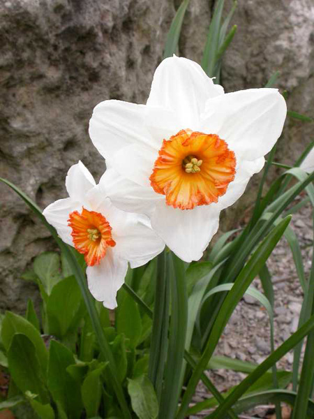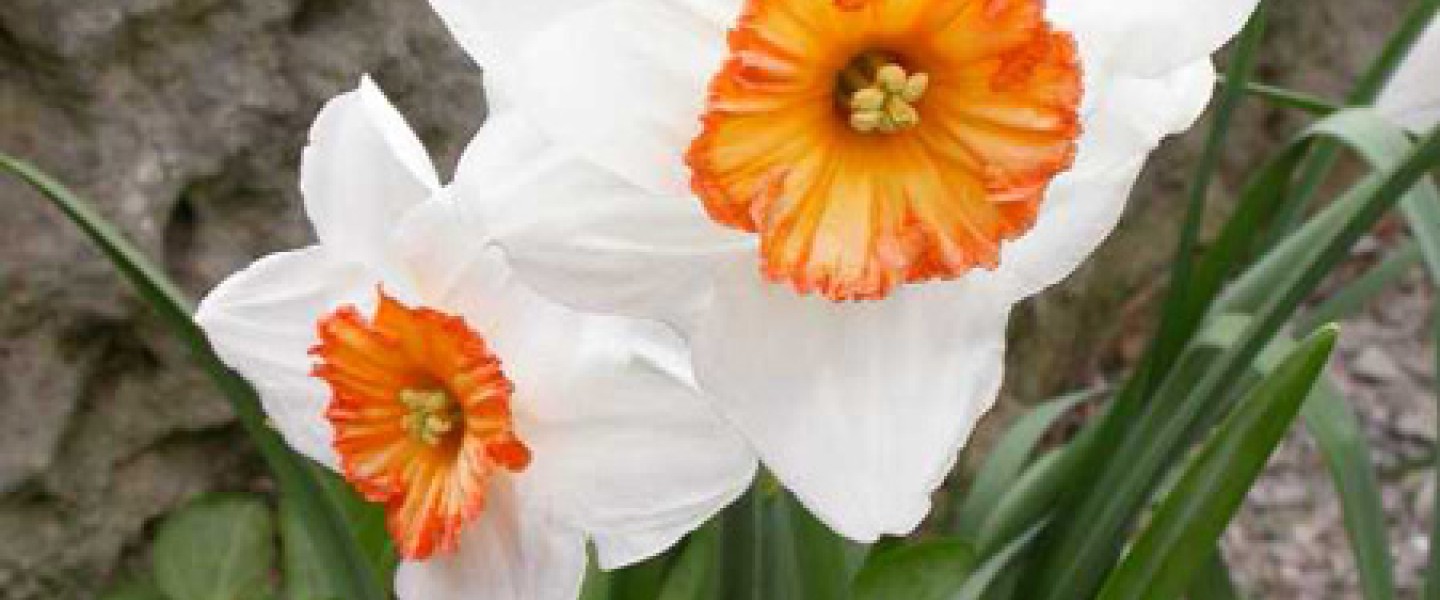 Sweetly-scented, this 1940's award-winner has a substantial, pure white perianth and a broad, disk-shaped, reddish-orange crown. It is a wonderful naturalizer that prefers filtered sunlight for best coloration. Blooms in April, plants 18" to 20" tall.