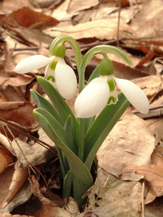 Bulbous perennial to 30cm, with broad, glaucous leaves and nodding, solitary white flowers with outer segments to 2.5cm long, inner ones flared at tip, with both basal and apical green marks.
