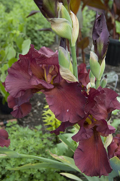 Plants reach 35" in height; standards and falls are burgundy with matching beards.