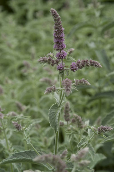 Plants rhizomatous, perennial. Stems erect, to 1 m, much branched, whitish, striate, retrorse short tomentose-villous. Leaf blade ovate to oblong-lanceolate, to 6 — 1.5 cm, appressed tomentose-villous, subglabrescent, base rounded to shallow cordate, margin coarsely irregular serrate-dentate, apex acute. Verticillasters in cylindric terminal spikes 3-8 cm, lower ones somewhat lax; floral leaves linear-subulate, mostly shorter than verticillasters. Pedicel to 2 mm. Calyx campanulate, ca. 2 mm, tomentose-villous, obscurely 5-veined; teeth linear-subulate, ca. 1 mm, close together in fruit. Corolla purplish, ca. 4 mm, sparsely puberulent; tube ca. 2 mm, gradually dilated upward; lobes oblong, obtuse; upper lobe oblong-ovate, emarginate. Ovary glabrous. Fl. Jul-Sep.Nanjing Shi, Shanghai Shi, and other cities [Russia; SW Asia, Europe]Cultivated in China. A polymorphic aromatic herb used medicinally.Mentha asiatica, M. vagans, and the Himalayan M. royleana Bentham all are very closely related to and perhaps doubtfully distinct from M. longifolia. Further work is needed to fully assess their correct status.