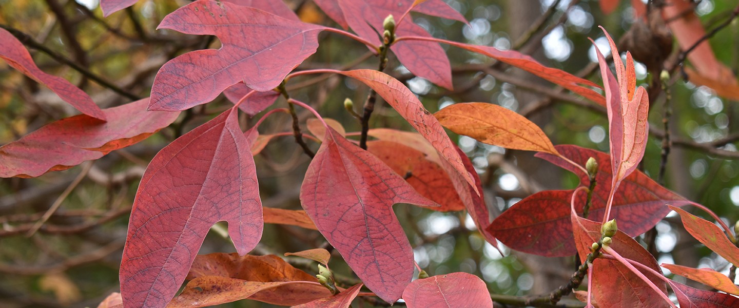 Tree, 30' to 60' tall, 25' to 40' wide; can grow larger. Pyramidal, irregular tree or shrub in youth, with many, short, stout, contorted branches, which spread to form a flat-topped, irregular, round-oblong head at maturity; often sprouting from the roots and forming extensive thickets. Bark dark reddish-brown,deeply ridged and furrowed, forming corky ridges that are easily cut across with a knife; bark almostmahogany-brown, handsome when mature. Foliage bright to medium green, changing to tones of yellow to deep orange to scarlet and purple in fall; one of our most outstanding native trees for fall color. Flowers usually dioecious, yellow, fragrant, developing before the leaves in April, borne in terminal racemes, 1" to 2" long, apetalous, calyx about 3/8" long and wide, with 6 narrowly oblong lobes, 9 stamens in male, and 6 aborted in the female; flowers are actually quite handsome and can be readily distinguished in the spring landscape.